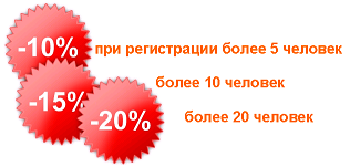 при регистрации от 5 до 10 человек действует скидка 10%,